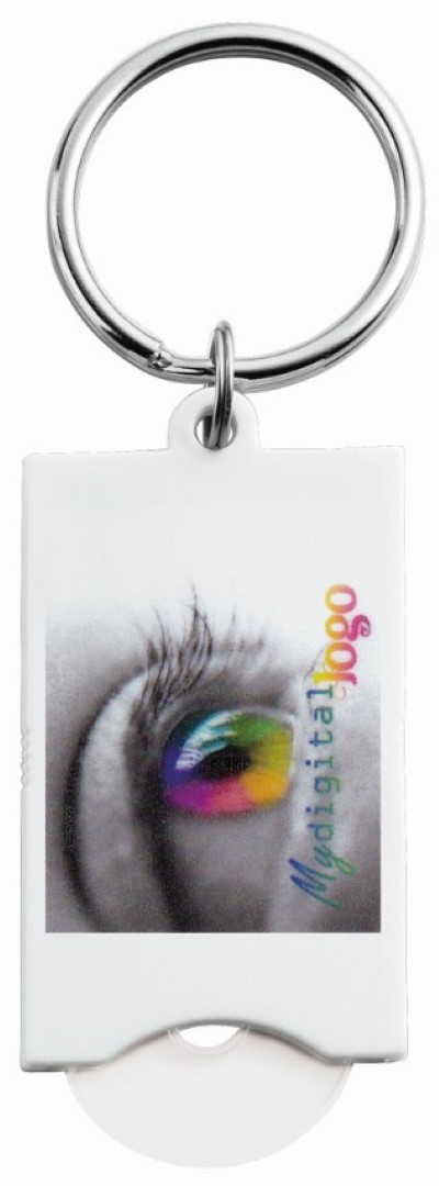 Preiswerter EK-Schlüsselanhänger, ideal für einen Digitaldruck und zu Promozwecken. VPE 1000. Chip, 30mm Schlüsselring, Polybeutel, Design-Infokarte